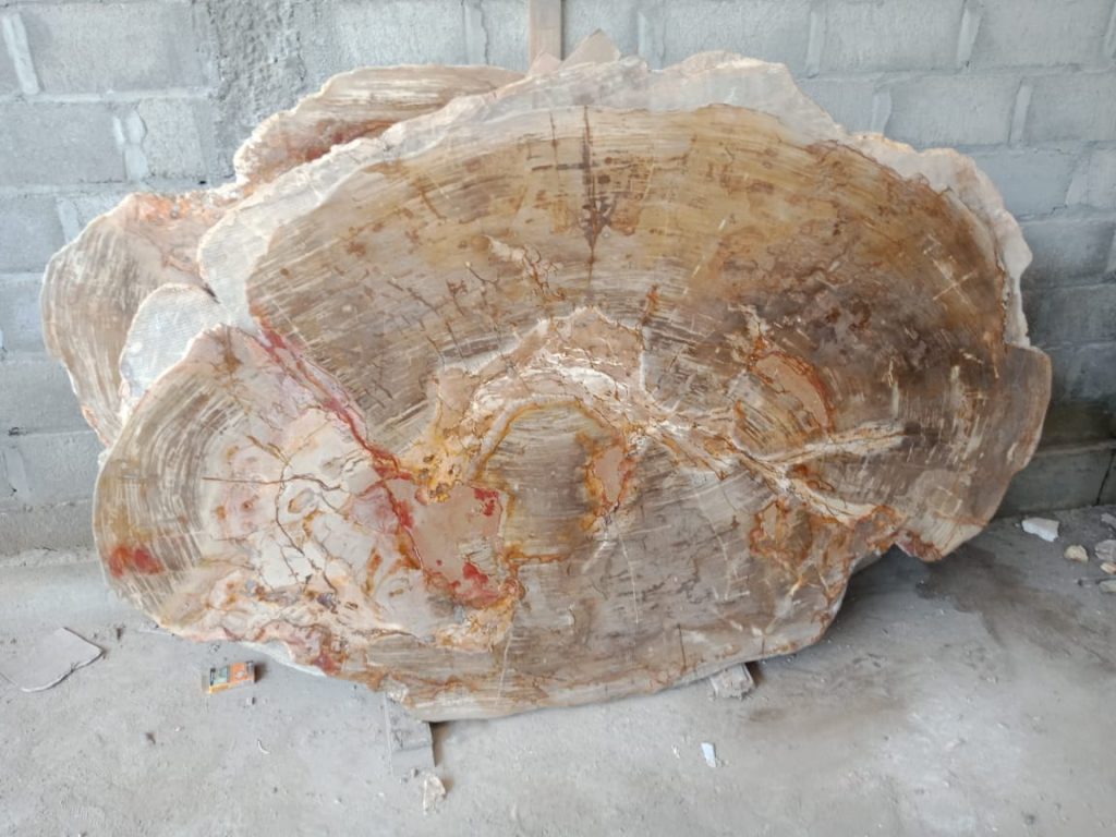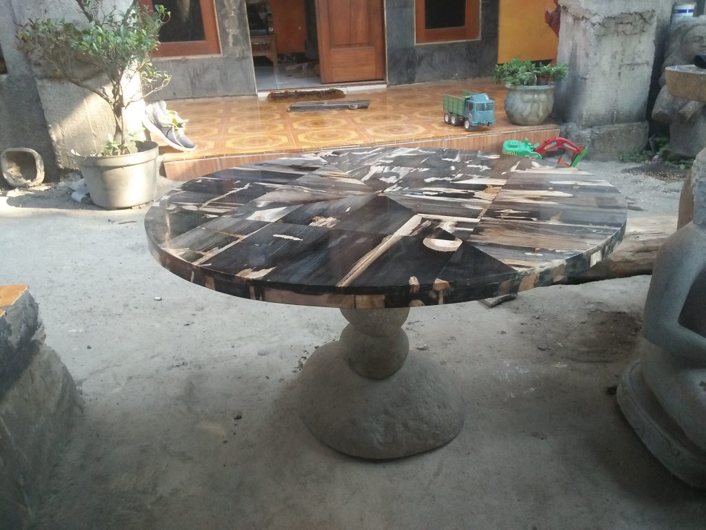 Meja dari kayu fosil